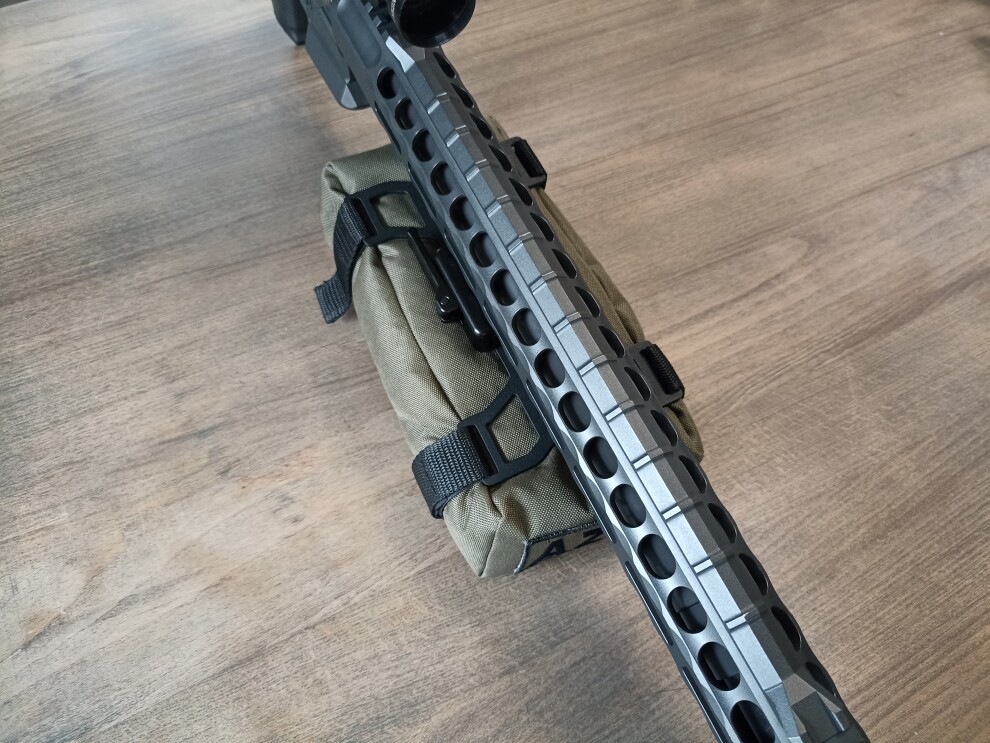 Крепление быстросъёмное на планки Вивер / WEAVER. Конструкция крепления позволяет изменить положение быстросъема на пластине и изменить "вылет" мешка вперёд или назад для оптимального расположения на планке цевья.